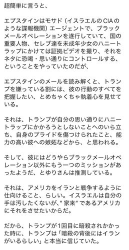 警察官ゆりさんの報告から https://www.facebook.com/share/p/1Dr2SUkTAY/?mibextid=wwXIfr https://youtu.be/CrPp_b6-RT0 エプスタインがモサドがらみなら、エプスタイン島は、やはり、ユダヤのハニトラ施設ということになる。 シナとユダヤが同じハニトラ…